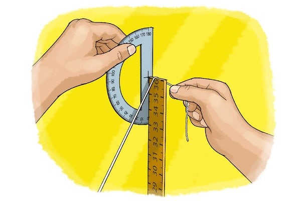 - Use a protractor to measure the angle between the string and the meterstick in degrees. Write this angle down.